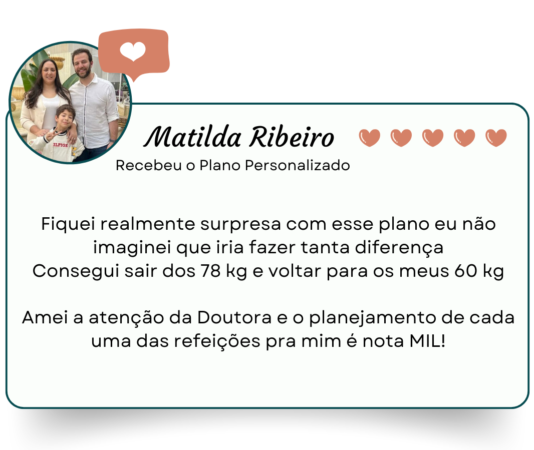 "Desde que conheci o plano consegui perder aqueles quilos a mais que ganhei dps de engravidar... e o que achei mais incrível é que nem passei fome!! Gratidão!"