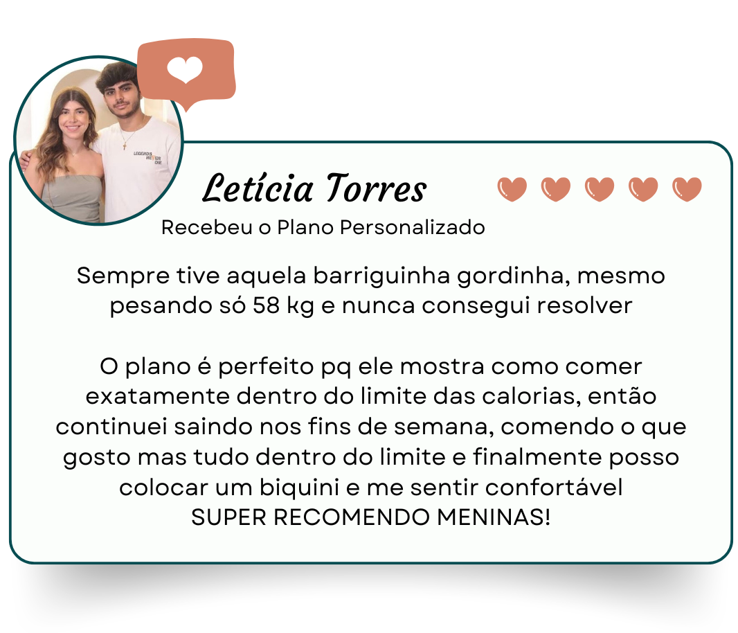 "Desde que conheci o plano consegui perder aqueles quilos a mais que ganhei dps dos 30... e o que achei mais incrível é que nem passei fome!! Gratidão!"